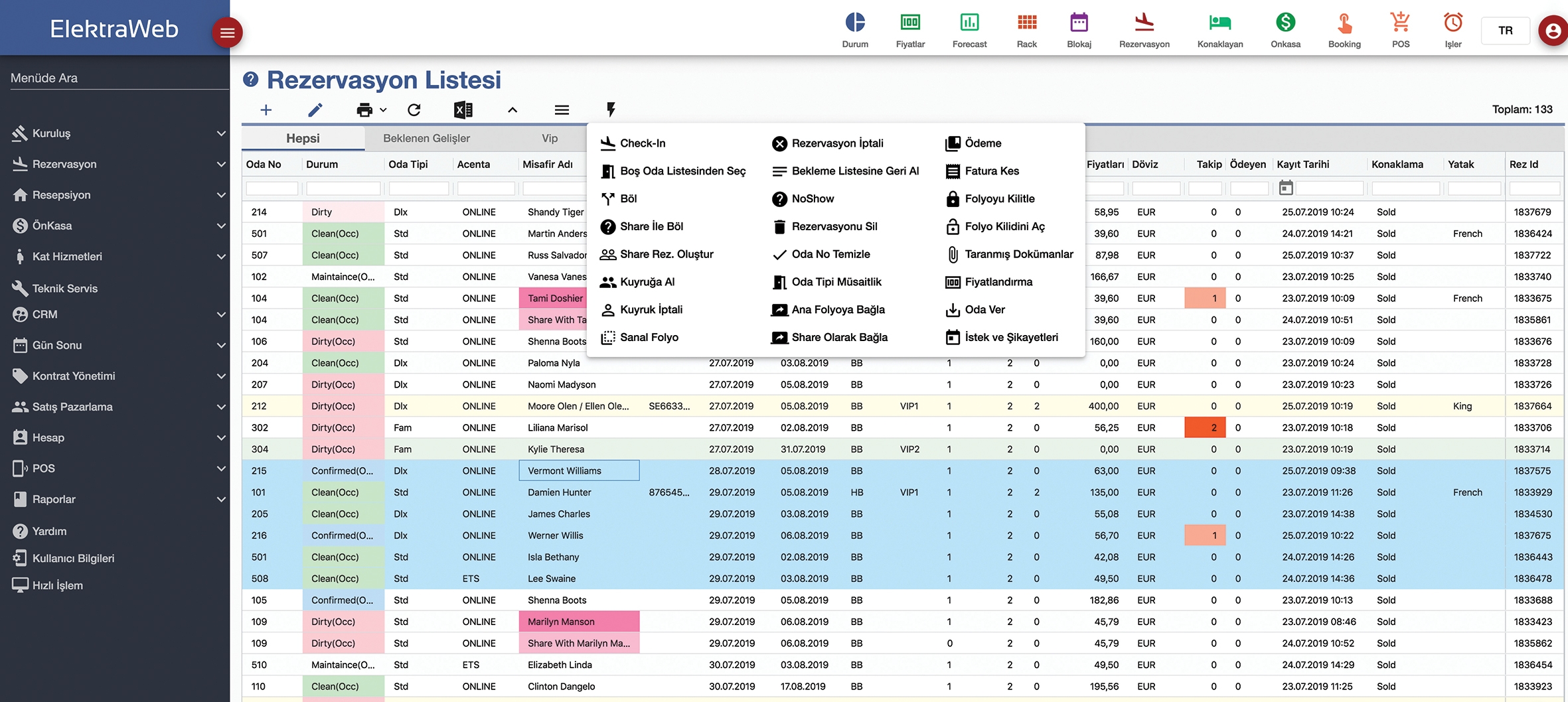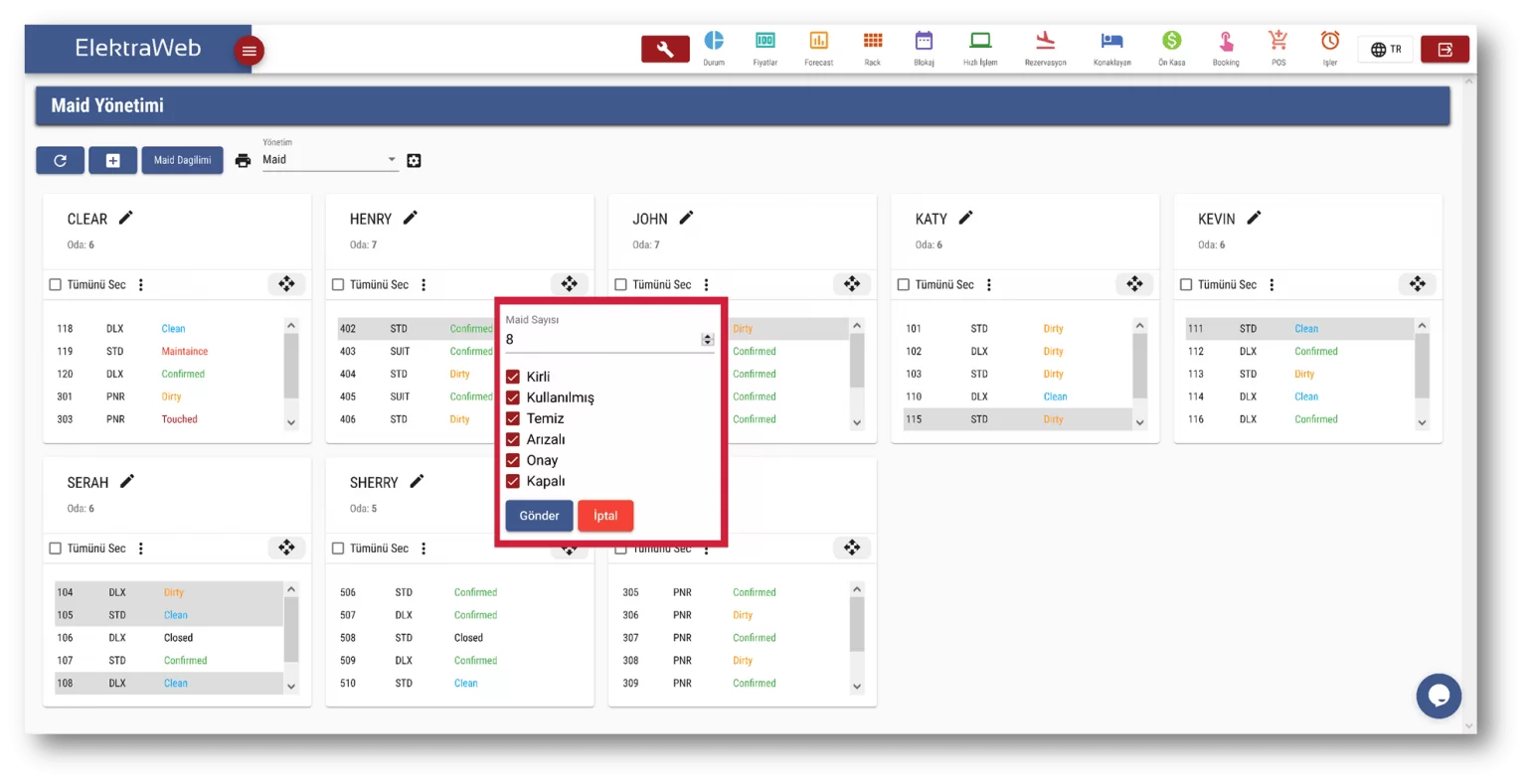Elektra ile oda değişimlerini gün ve saat olarak planladığınızda yeni odanın bloke edilerek farklı bir misafire verilmesini engelleyip, yeni odanın tipine göre