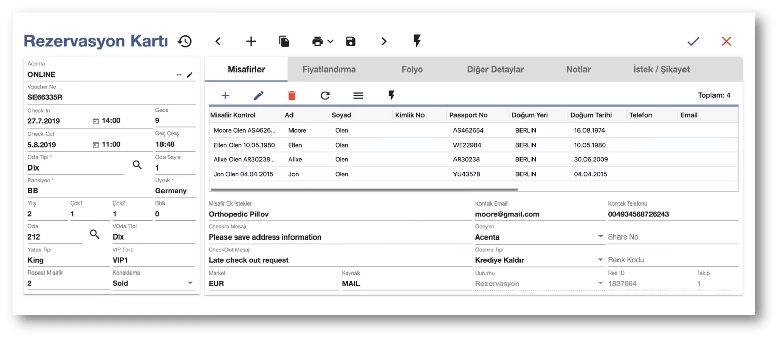 Elektra online check-in ile, misafirlerinizin otele gelmeden check-in işlemlerini tamamlamalarını sağlayabilirsiniz. Böylece ön büronuzdaki yoğunluğu azalttığınız gibi misafirlerinizi bekletmemiş ve memnuniyetinizi arttırmış olursunuz.